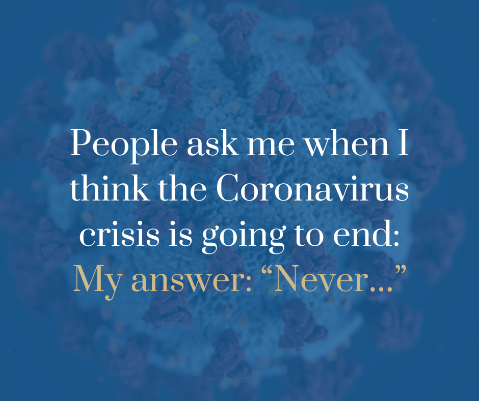 People ask me when I think the Coronavirus crisis is going to end: My answer: “Never…”